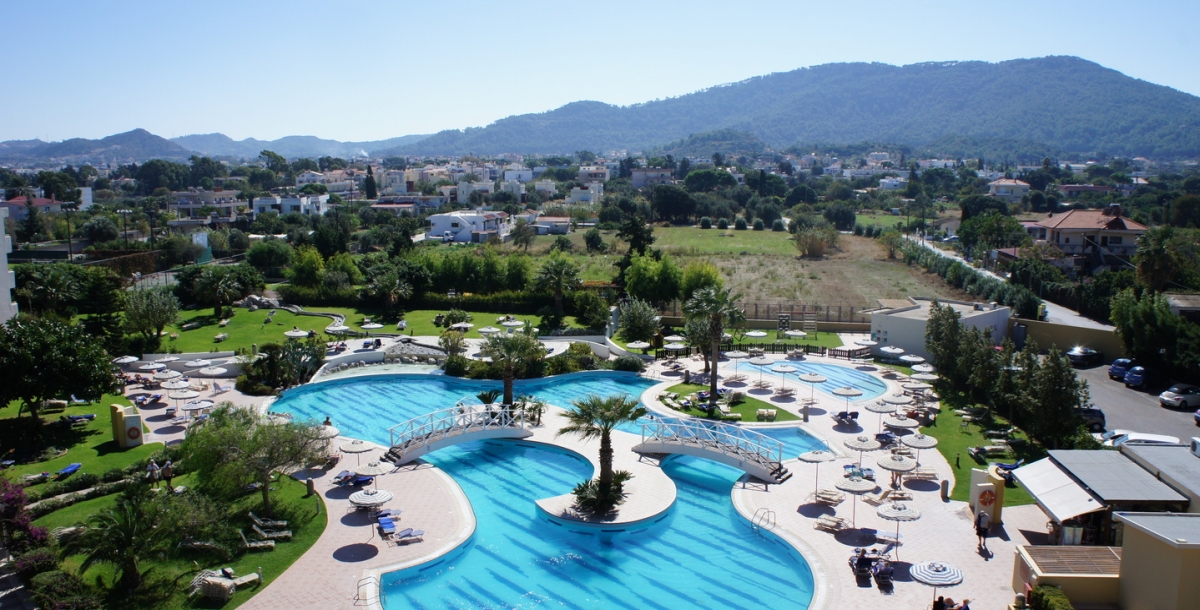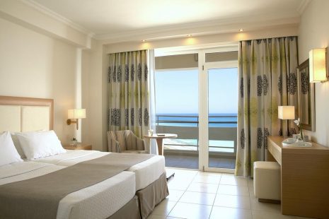 This stately and elegant hotel is located in Ialyssos only minutes away from the picturesque town of Trianta and famous city of Rhodes. Visitors might wish to shop at the local market, go for a walk at the seaside, or visit Rhodes city to view the Grand Master’s Palace, the Acropolis of Rhodes, and the medieval shipwrecks in the Byzantine harbour.The hotel’s guest rooms are spacious and modern with air conditioning and sound-proof windows to ensure a good night’s rest after a busy day of sightseeing or exploring the island. Guests can enjoy delicious buffet-style meals with show cooking and theme nights in the main restaurant, or Chinese or Italian cuisine in the two a la carte restaurants, and children will delight in the kid’s club or teen’s club and games room. The hotel also offers three bars, including a pool bar, as well as a TV room, a library and reading room, and a minimarket, all for a carefree island holiday.