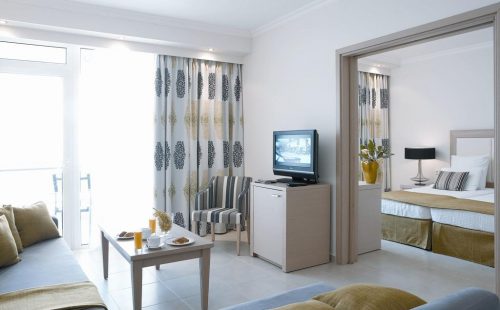The air-conditioned rooms at Electra have tea/coffee makers, satellite TVs, and luxurious bathrooms with bathrobes and slippers. The minibar is fully stocked and its use is free once upon arrival. Most rooms have sea view, while some have pool or garden view.