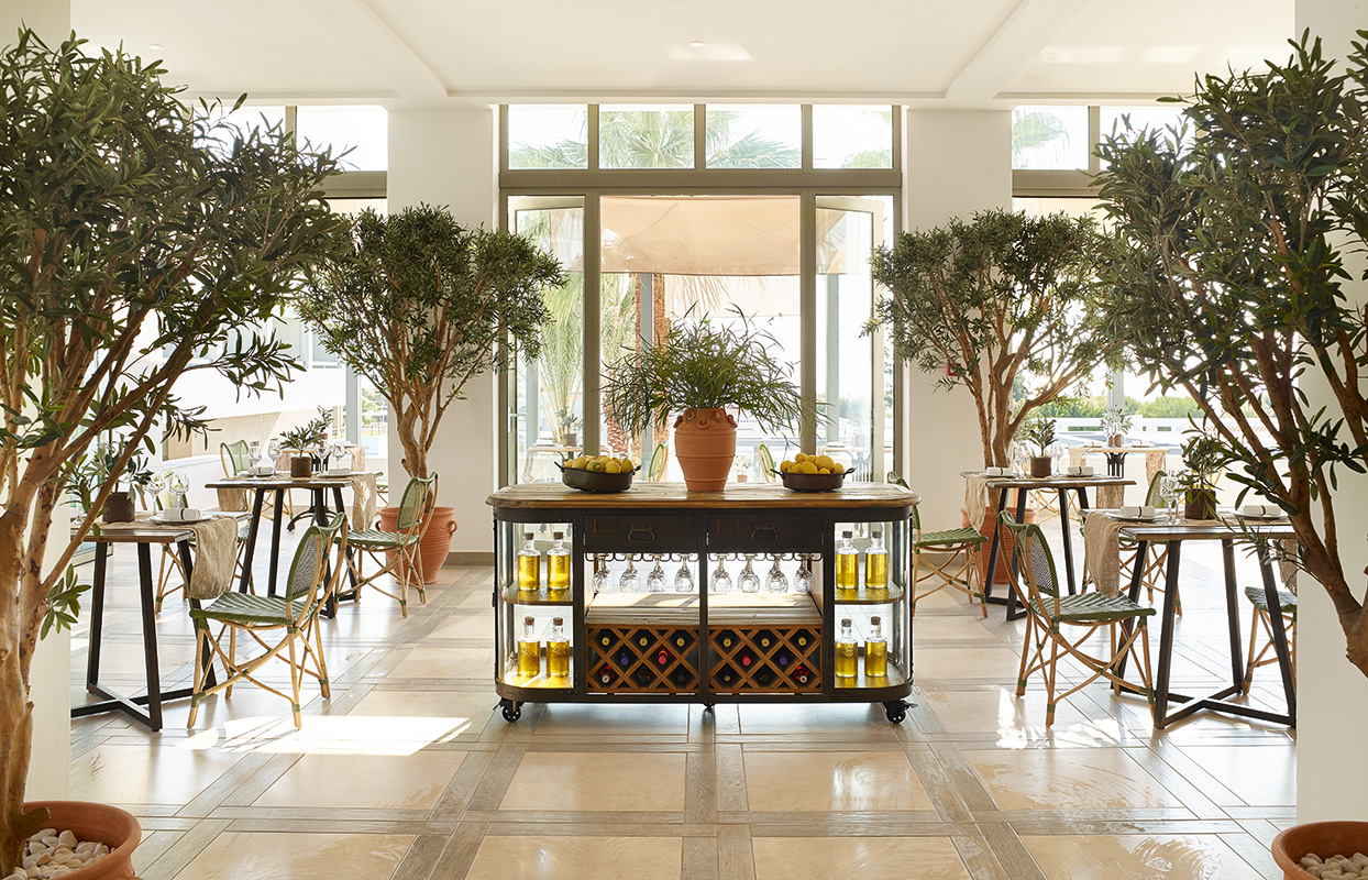 Opening Times: [07.15-10.00, 10.00-10.30, 12.30-14.30, 18.30-21.30.] With buffet breakfast and late Continental options. For dinner there's a wide variety of hot and cold dishes along with Greek, Italian and Mediterranean theme nights and show-cooking.Brasserie & Patisserie