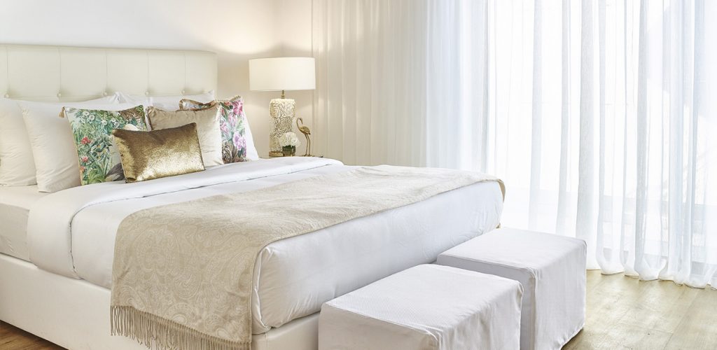 Refreshing Double Room is illuminated within a neutral palette of colors, embellished with details of ruby and scarlet.