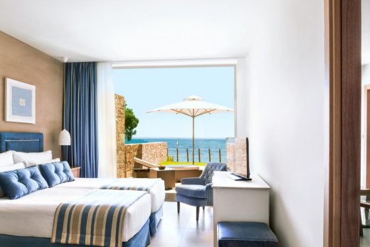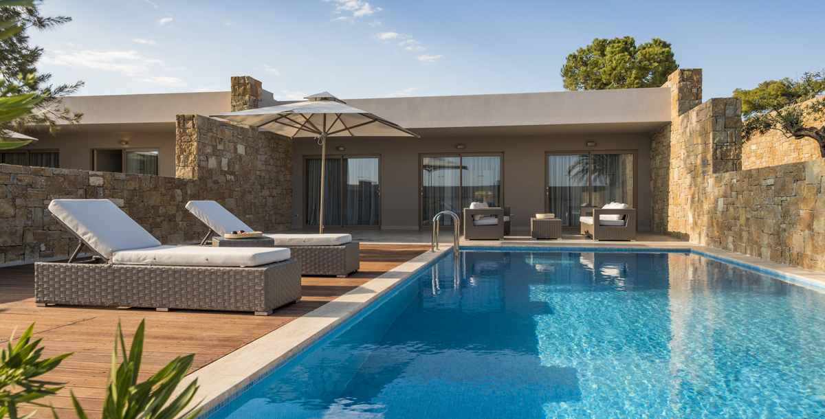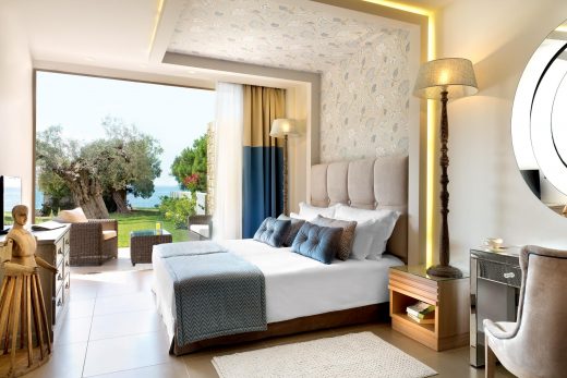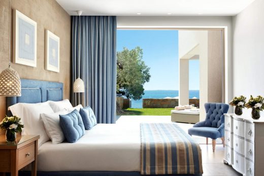 Launched in May 2015, spacious guest rooms and suites brim with understated sophistication, set in twenty two acres of immaculately tended grounds. Luxury one and two bedroom suites in low-rise bungalows look out over the Aegean sea, each with a private pool, garden or balcony.