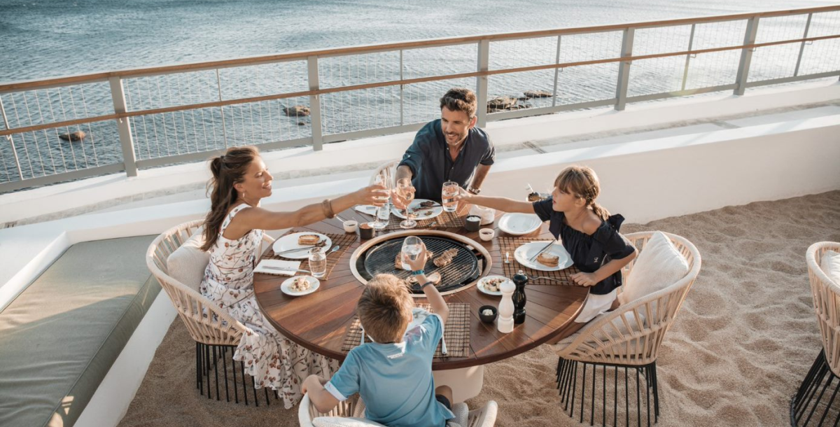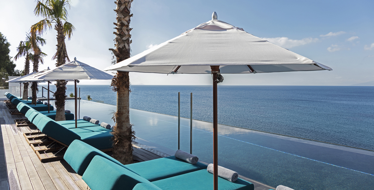Dining options include Greek, Italian and international cuisine. Guests can also enjoy cocktails, drinks and light snacks in one of the resort’s bars in the lobby, by the pools or on the beach.